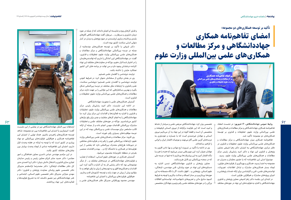 ✔️ امضای تفاهم نامه نامه همکاری جهاددانشگاهی و مرکز مطالعات و همکاریهای علمی بینالمللی وزارت علوم