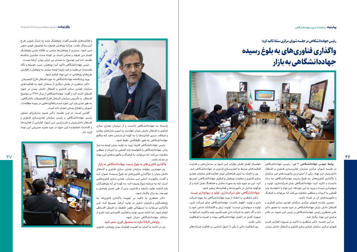 ✔️ واگذاری فناوری‌های بلوغ یافته جهاددانشگاهی به بازار