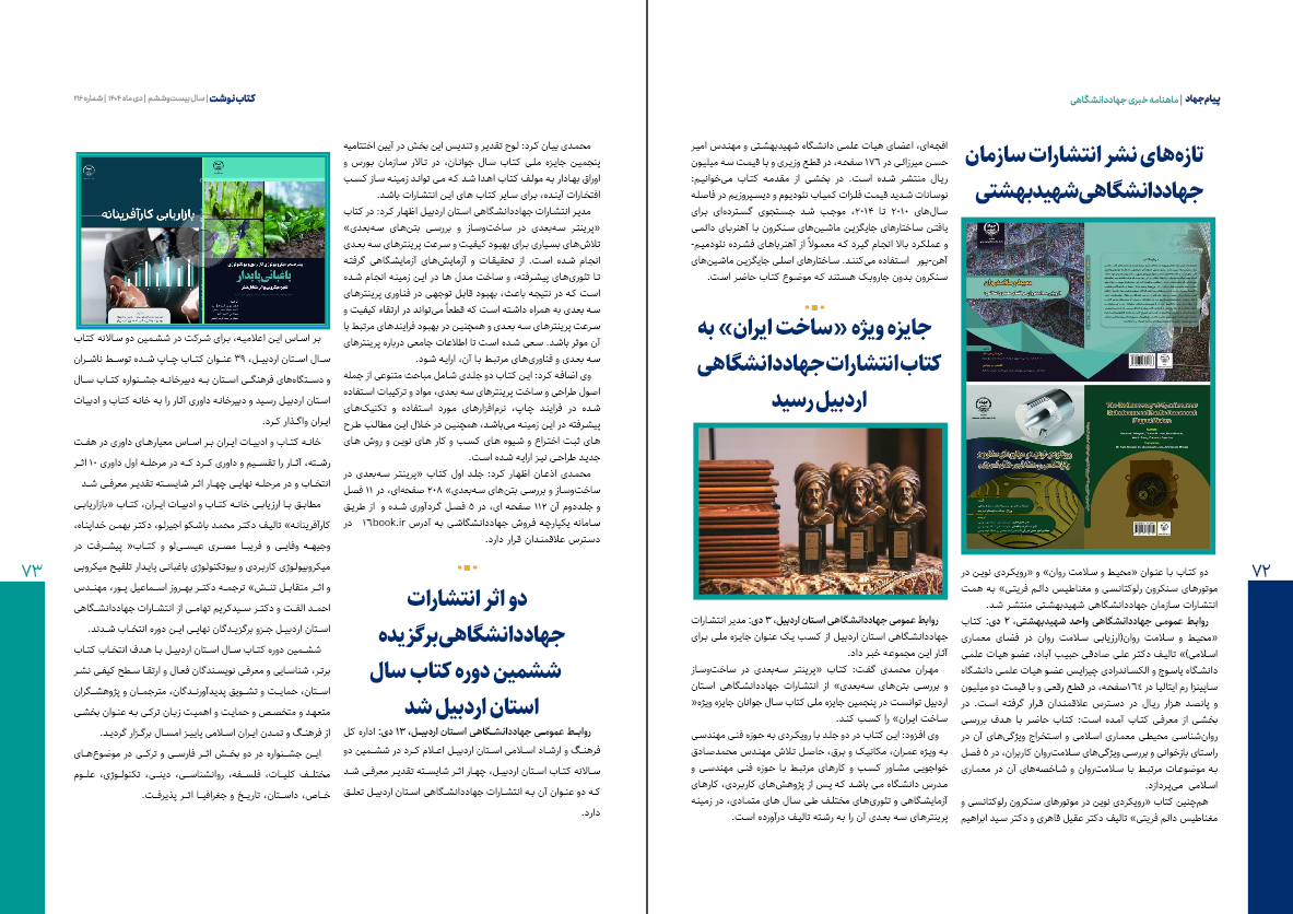 ✔️ جایزه ویژه «ساخت ایران» به کتاب انتشارات جهاددانشگاهی اردبیل